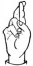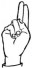 На ћирилици написано ХРАНИМИР НЕДЕЉКОВИЋ састоји се из 18 слова [?]. Исписано ћириличном једноручном азбуком за глувонеме: